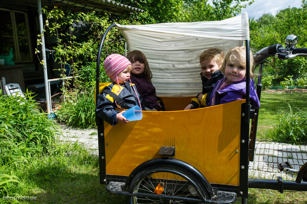 Zwischendurch hab ich mit den Kindern eine Tour mit dem Kistenfahrrad gemacht. Die restlichen Eltern konnten sich mal für eine gute halbe Stunde zurück lehnen und die Sonne genießen. Kalt war es trotzdem…