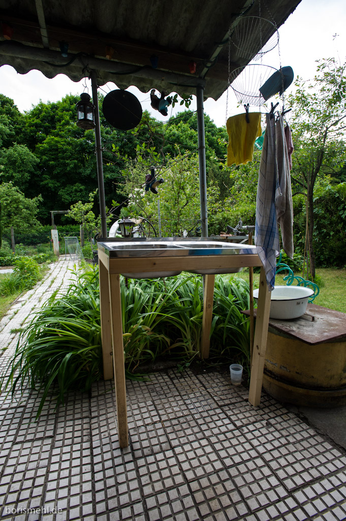 Den Untertisch für das Spülbecken haben wir auch noch ruck zuck zusammen geschraubt, Volker und ich. Klasse! Wackelt noch wie ein Kuhschwanz, wird aber schon bald stabil sein.