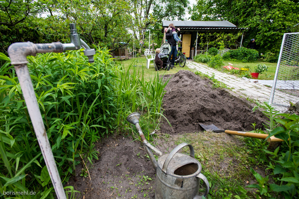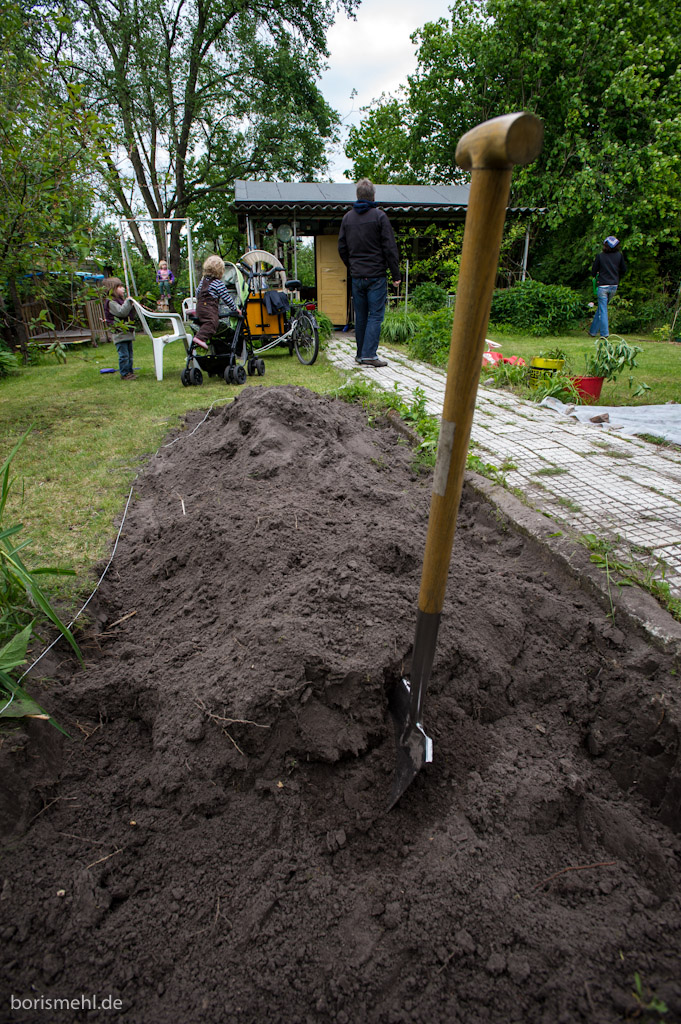 Vatertag im Garten. Erst mal ein Kartoffelbeet ausgegraben, dann gegrillt. Volker war mit Luise da. Sehr schön! Fidi und Johann vom Garten nebenan waren auch mit dabei. Die Kinder haben sich gut vertragen, die Väter auch 😉