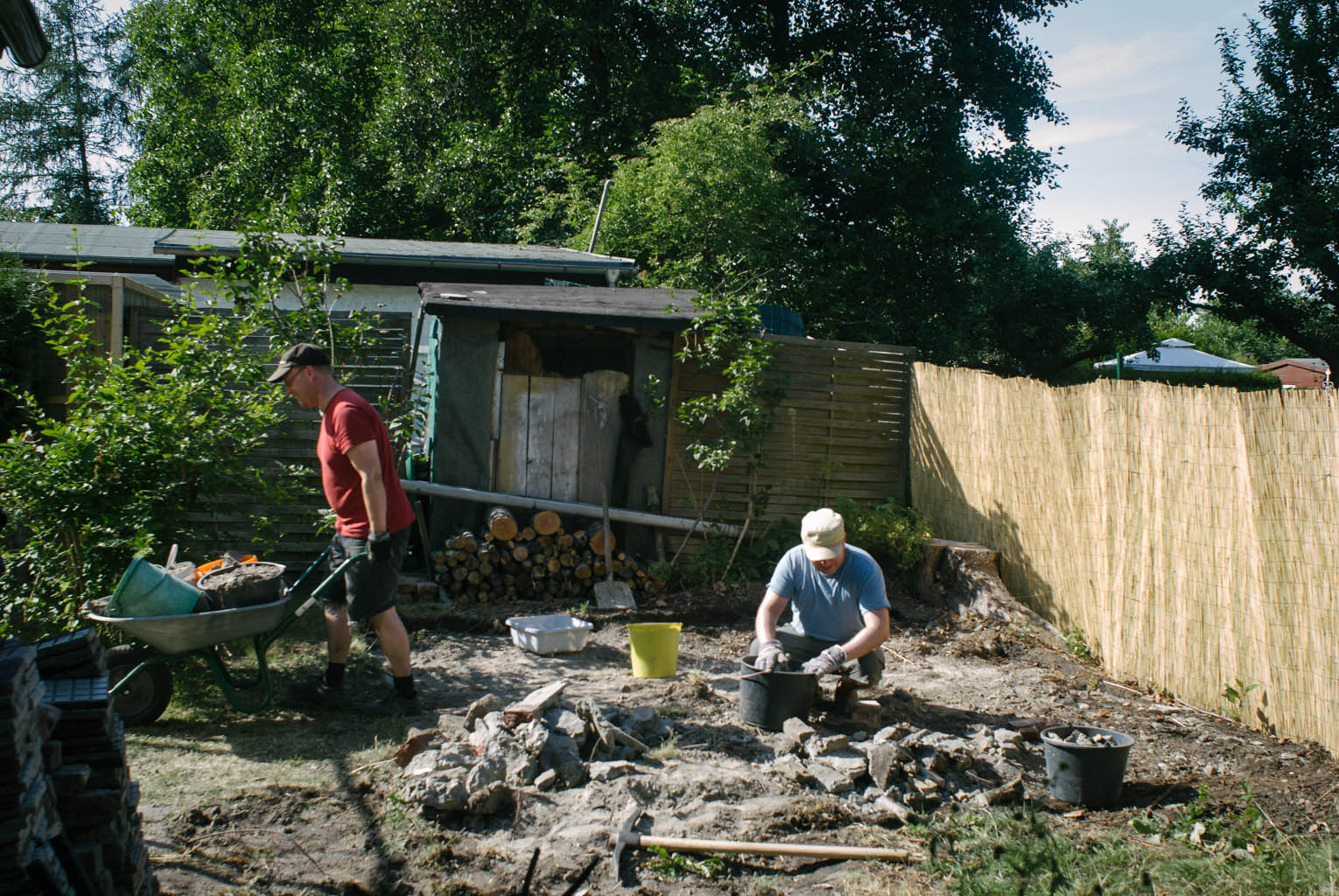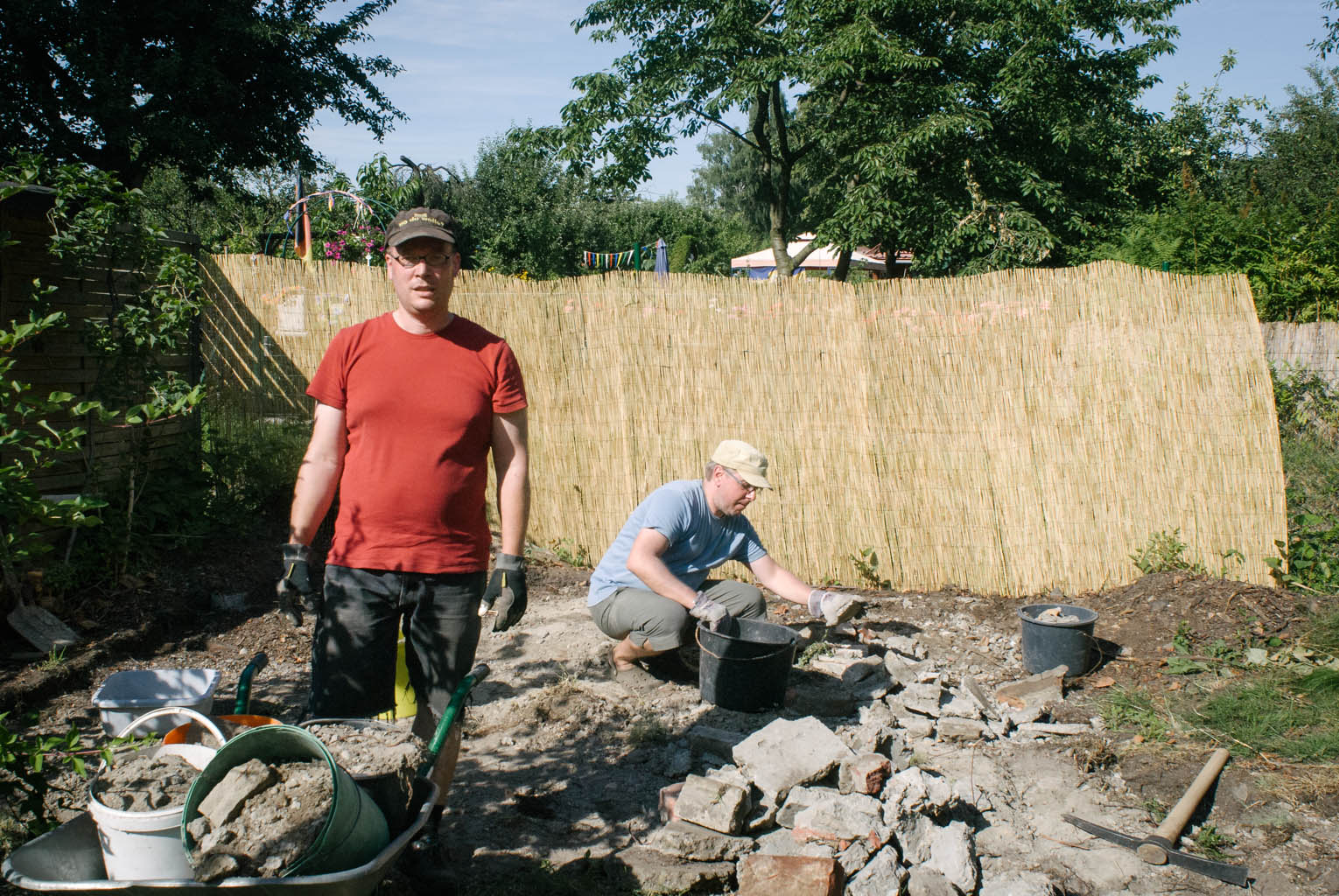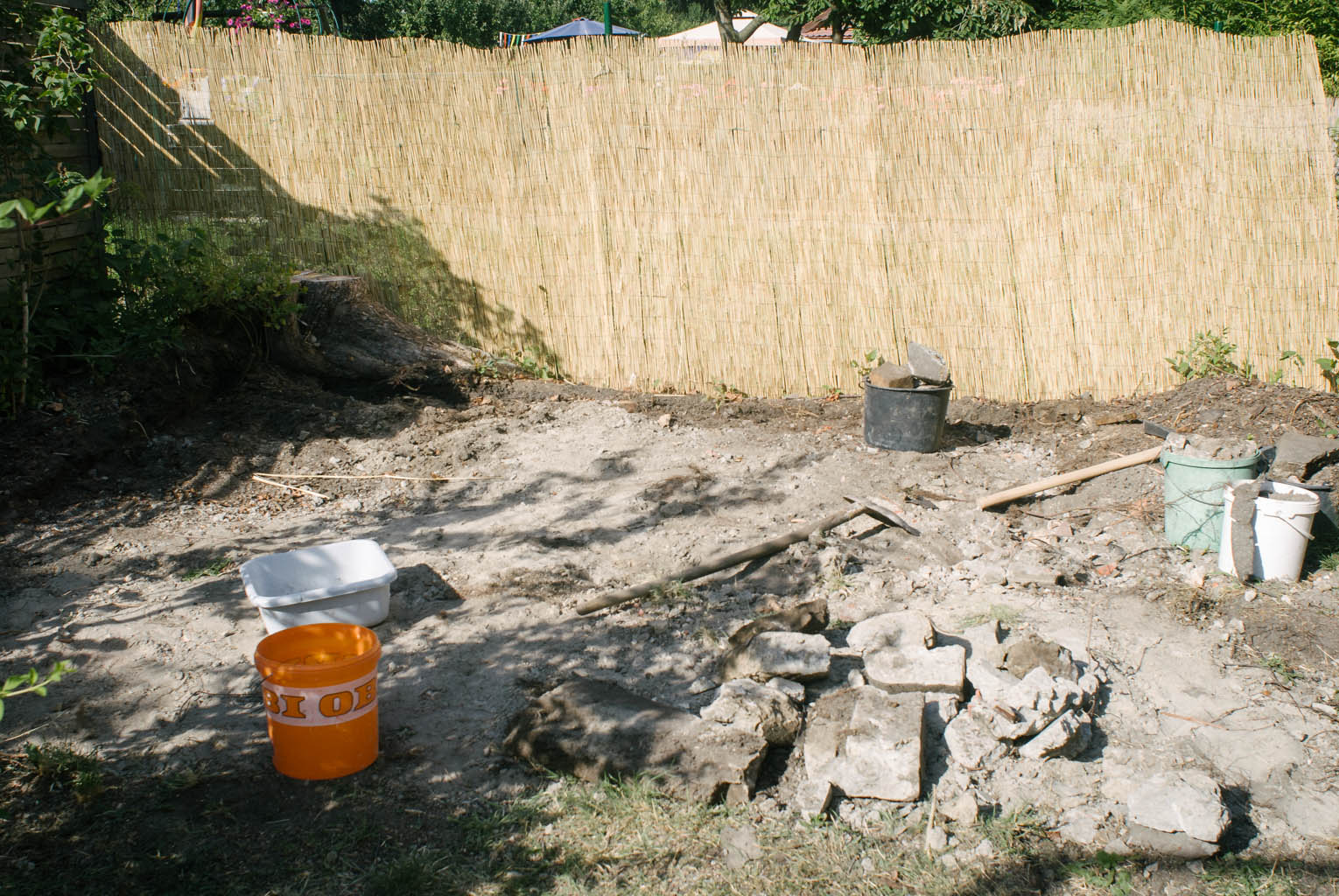 Die Platte hinten ist weg. 3 qm Schutt, knapp 50 Schubkarren voll. Und Dank der tatkräftigen Hilfe von Volker, ohne den es nicht geklappt hätte!