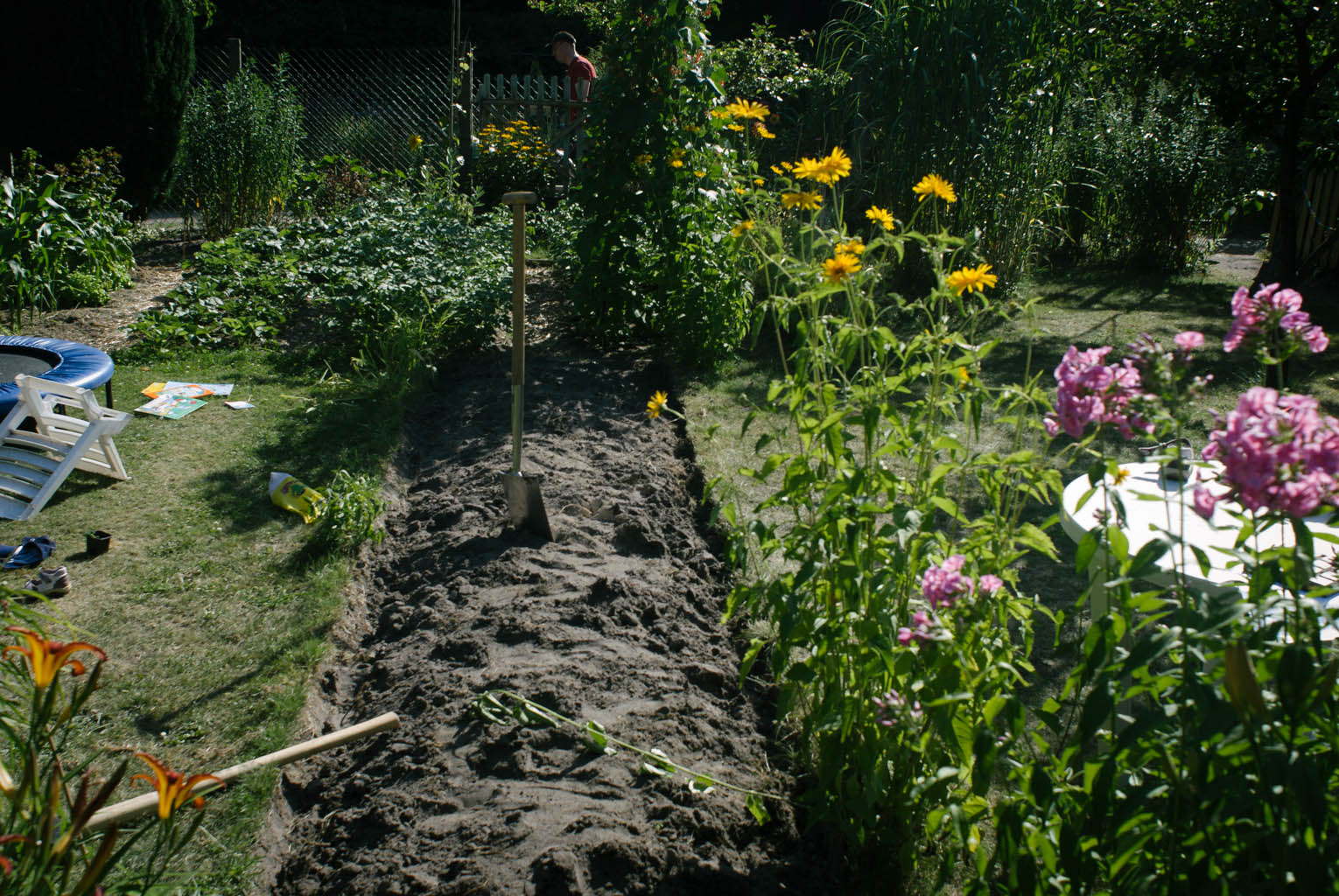 Doris hat den Weg vorne raus gerissen und nachmittags kam Claudia mit den Kindern dazu. Ein heißer, staubiger und sehr erfolgreicher Tag!