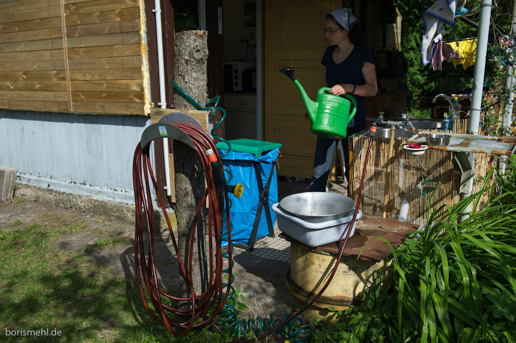 Alles blüht, der Rasen wächst nun doch und sogar am Sonntag nach dem Fotomarathon konnte ich es nicht lassen, wenigstens vier Schrauben anzufassen und diesen Schlaufaufhänger anzubringen. Das ging mir schon die ganze Zeit auf die Nerven, dass der Schlauch so blöd rum lag.
