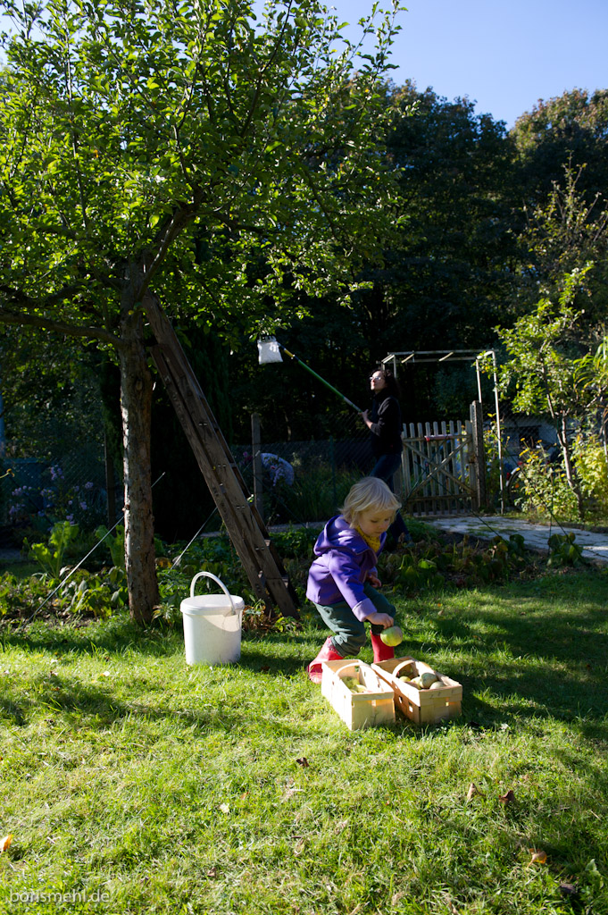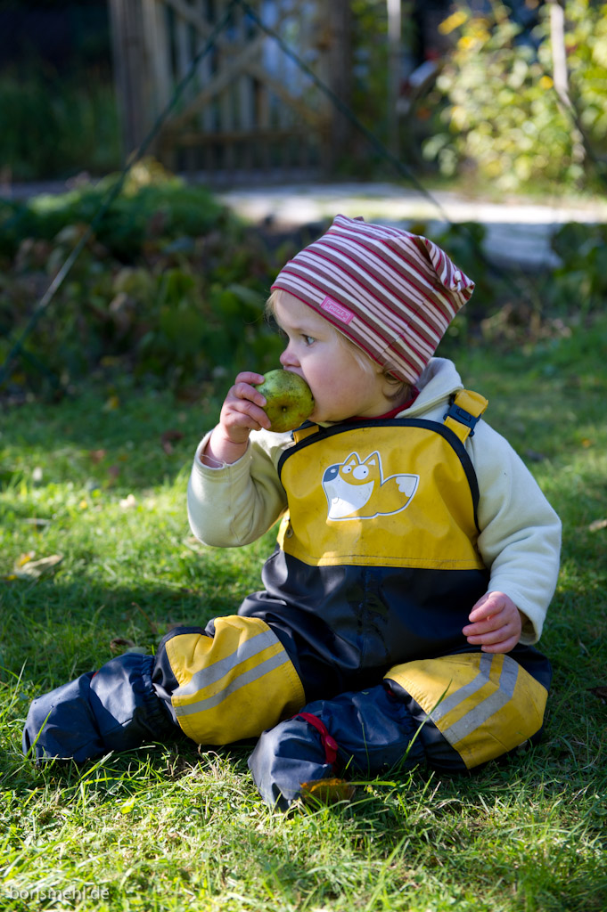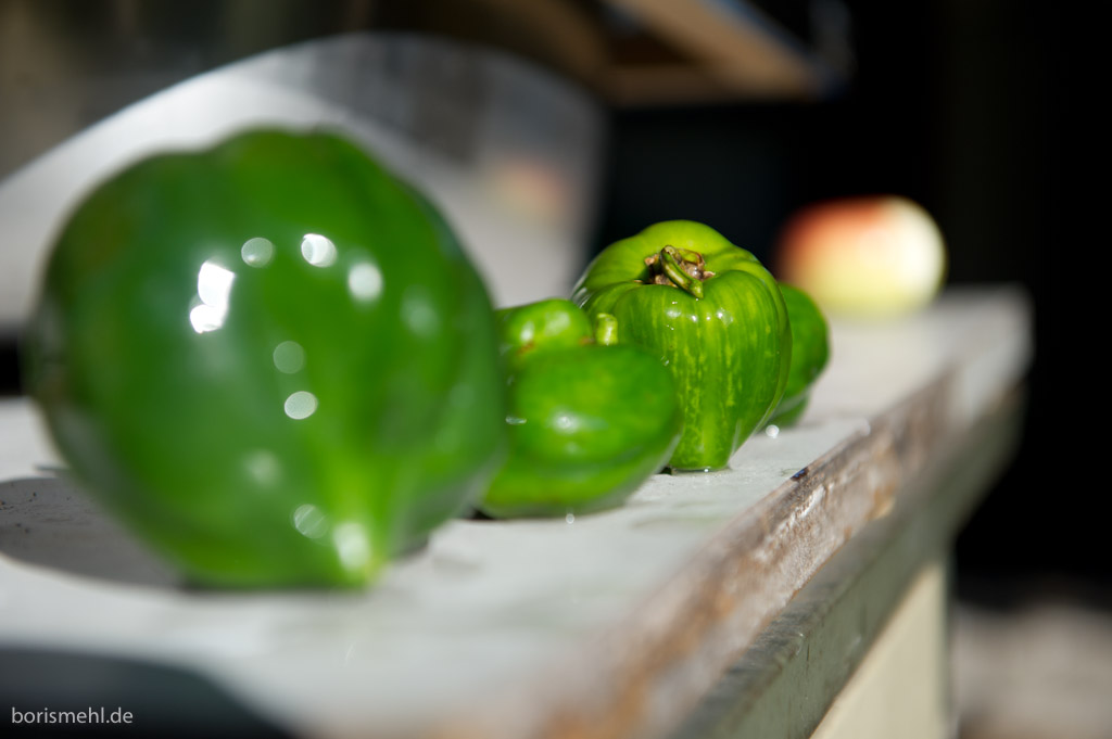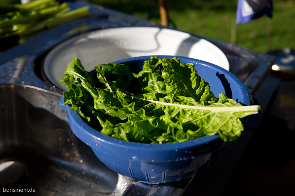 Die Äpfel werden geerntet, ebenso die Paprika und der Mangold. Der wird gleich im Garten zu einem lecker Mittagessen verarbeitet. Ach, was kann der Garten schön sein!