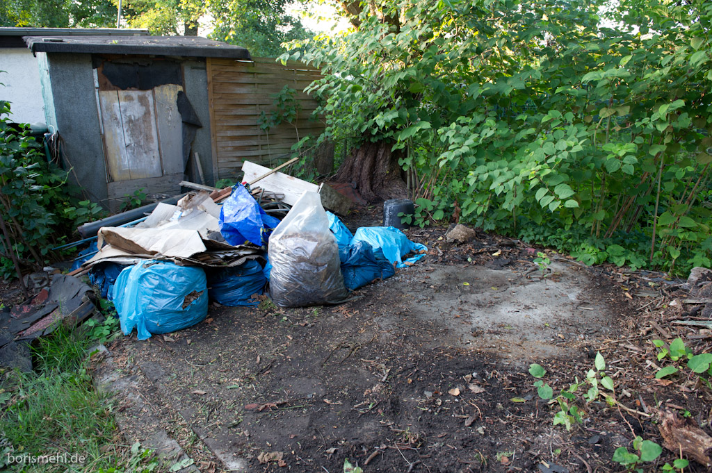 Im Projektmanagement nennt man das, was heute passiert ist einen Meilenstein. Der Grünschnitt wurde abgeholt. Stolze 5 qm haben in den Container gepasst und ich weiß nicht, wie viele Schubkarren ich nach vorne zum Parkplatz gekarrt habe. Morgen hab ich sicher nen ordentlichen Muskelkater, aber ich werde mich drüber freuen! Endlich sind die großen Haufen Grünschnitt Vergangenheit und die Überreste des Schuppens am Mittwoch auch.