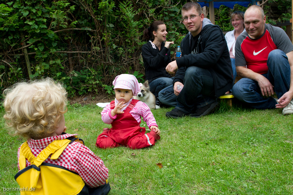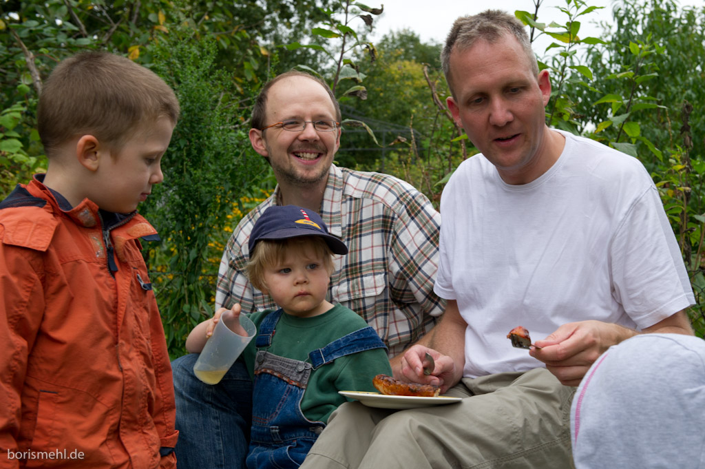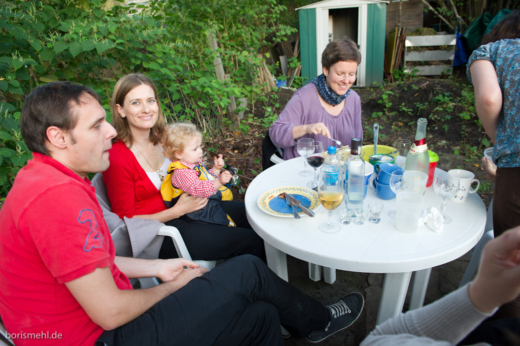 Insgesamt haben wir mit 18 Erwachsenen und 10 Kindern im Garten gefeiert. Schön war’s!