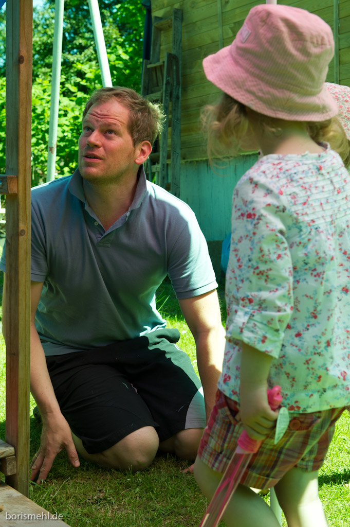 Natürlich gab es eine Schatzsuche für die Kleinen. Eine Karte war im Sandkastenhäuschen bei uns versteckt. Jan hat das toll gemacht! Die beiden lesen jetzt übrigens mit und wir hier sind auf die Kommentare gespannt 😉