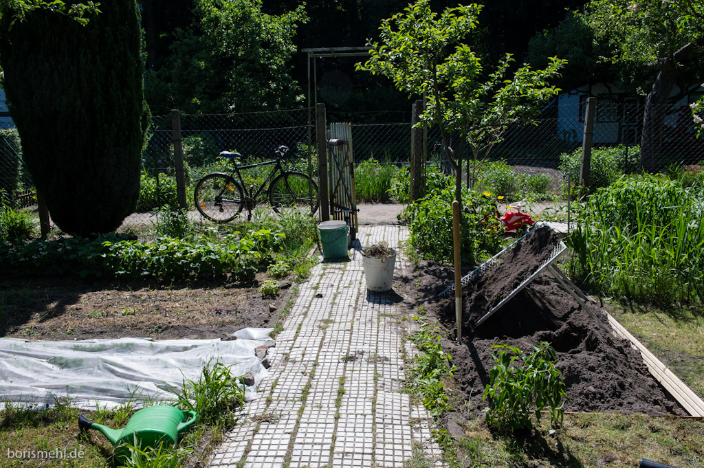 Gegrillt haben wir bei uns. Hinten auf der Platte steht jetzt der alte „Spültisch“ als Werk- und Abstelltisch. Der Bambus wuchert hinten auch wieder. Vorne hab ich heute das Kartoffelbeet umgegraben. Doris hat die vorgekeimten Knollen rein gelegt. Bin gespannt, ob da was kommt. Ansonsten haben wir noch den Weinstock neben dem Eingangstor, die Tomaten und noch ein paar Pflanzen eingepflanzt und richtig viel gegossen.