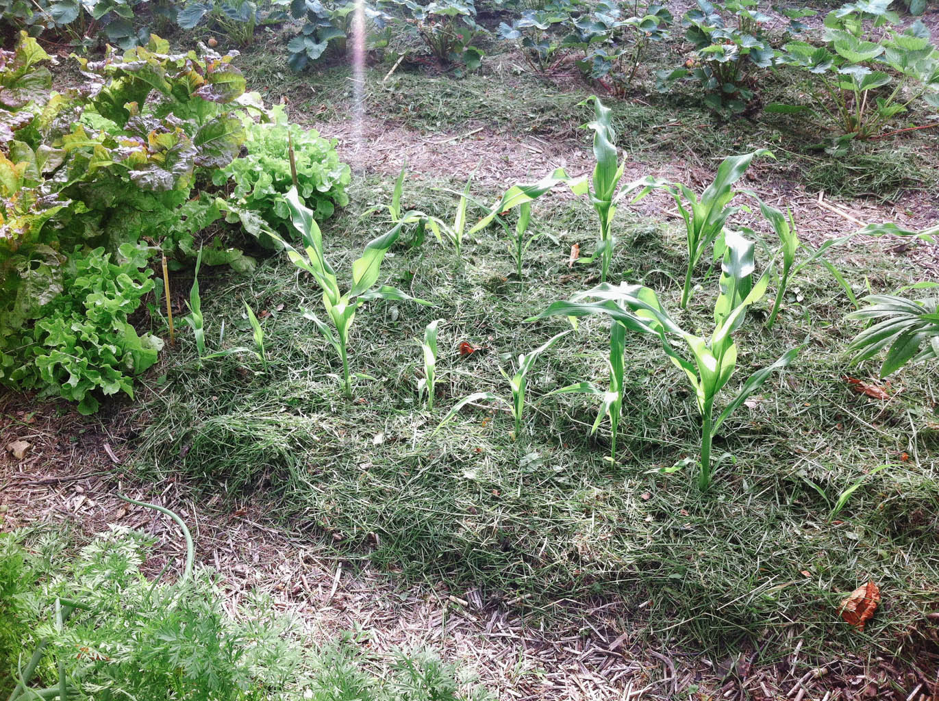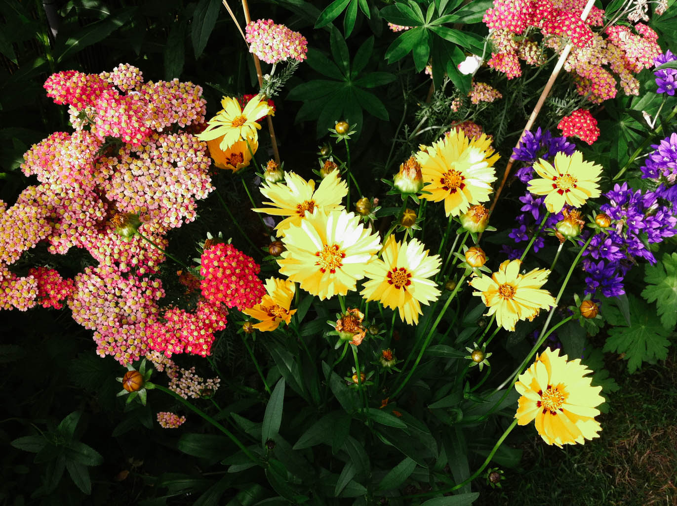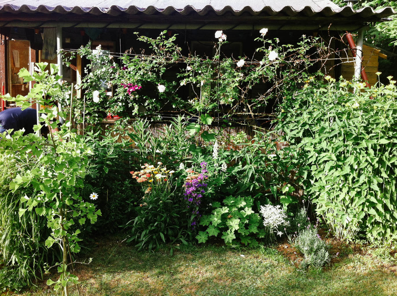 Rasen vorne und Blumen