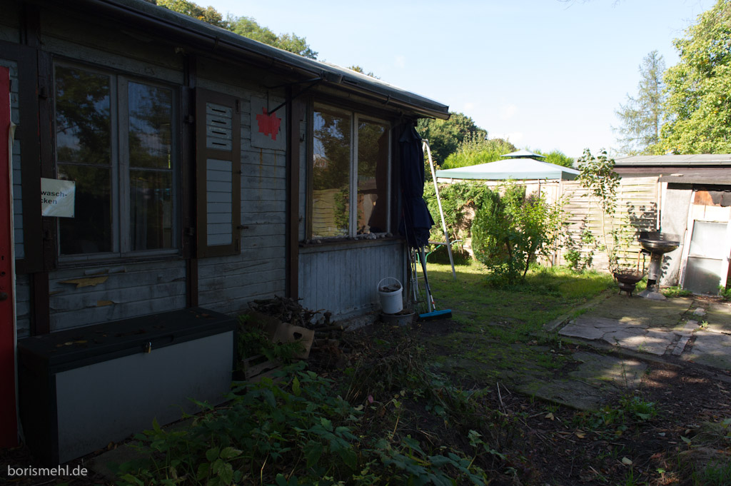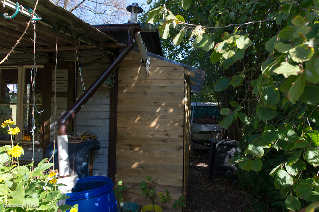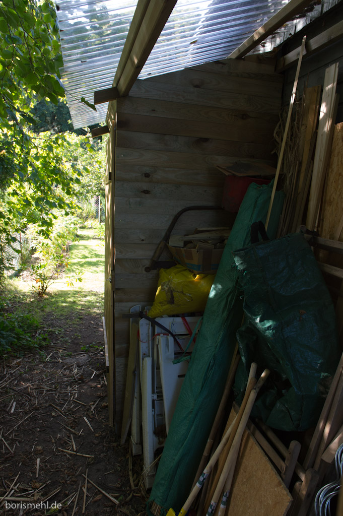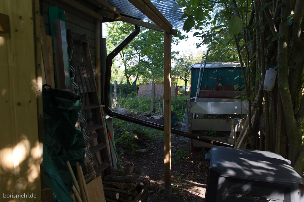 Zwei Jahre später hat sich doch einiges getan! Allerdings sieht es hinter der Hütte immer noch aus wie Kraut und Rüben… Aber der Plan, wie es weiter gehen soll, ist jedenfalls schon mal in unseren Köpfen und das zählt. Hier also der Istzustand: